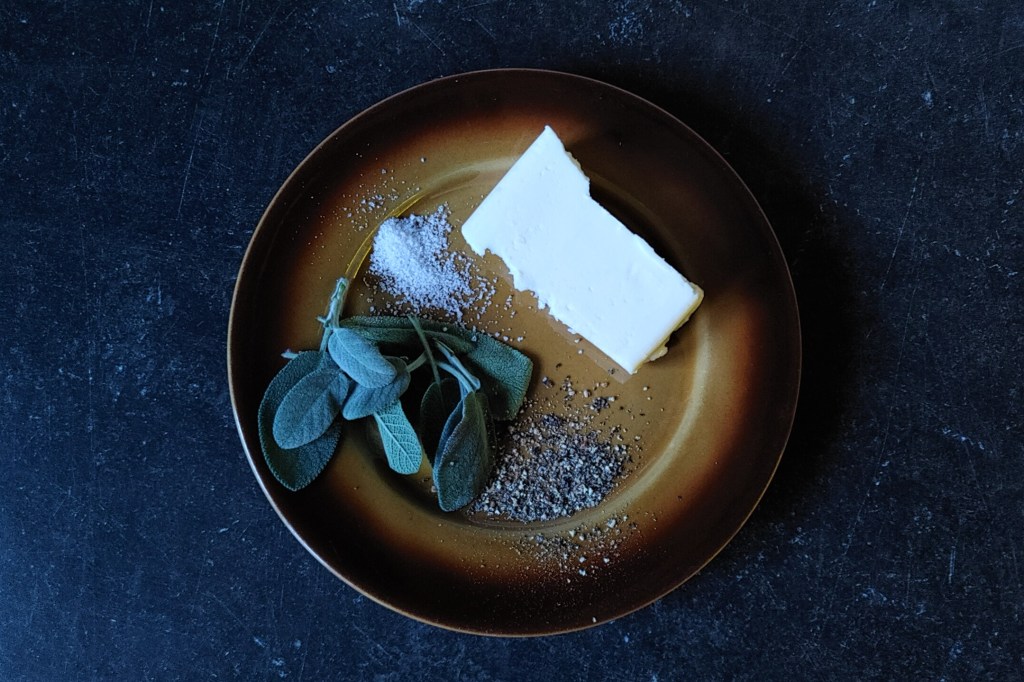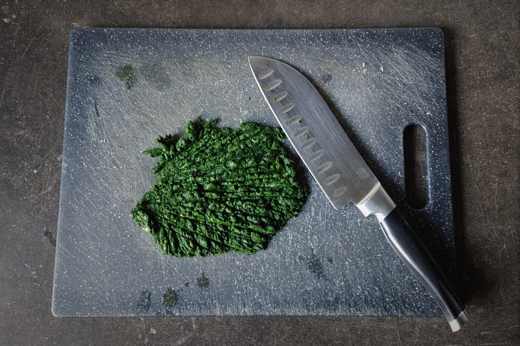 No dobrze. Wiemy już czego będziemy potrzebować. Pora na dokładniejsze omówienie składników. Jak zawsze namawiam do szukania ingrediencji jak najlepszej jakości, co pozwoli w pełni cieszyć się smakiem dania. Jednym z głównych bohaterów jest szpinak. Interesują nas świeże liście, nie mrożona papka. Obecnie warzywo to bez problemu kupimy przez cały rok. W sezonie możemy skorzystać z bardziej wyrośniętych (i prawdopodobnie tańszych) liści. Zimą pozostaje nam tzw. szpinak baby. Zwracamy uwagę na to, by liście były świeże i jędrne, o ładnym zielonym kolorze. Gorzej jest z dostępnością ricotty. Jeszcze kilka lat temu była ona powszechnym widokiem zarówno w sklepach wielkopowierzchniowych jak i w popularnych „spożywczakach”. W trakcie pandemii z nieznanych mi powodów zaczęła jednak powoli znikać ze sklepowych półek. Szukamy jej w hipermarketach, sklepach specjalistycznych i Internecie. Nie będę rozpisywał się tutaj na temat procesu produkcyjnego ricotty, warto jednak zaznaczyć, że tradycyjnie powstaje ona z pozostałej po produkcji serów serwatki. Obecnie, ze względu na duże zapotrzebowanie, prócz tej ostatniej w składzie ricotty coraz częściej znajdziemy także mleko lub śmietankę pozwalające „sztucznie” zwiększyć produkcję. We Włoszech ricotta zwykle występuje w dwóch postaciach – „mokrej” i odsączonej. Pierwszą bez większych problemów nabędziemy w naszym kraju. Świetnie sprawdza się jako nadzienie do canelloni lub lasagne, składnik deserów lub topping do focaccii lub pizzy. Druga forma jest zdecydowanie bardziej sucha, a w konsystencji przypomina nieco twaróg. Ta zdecydowanie lepiej nadaje się na nadzienie do ravioli. Niestety dostępność włoskiej „suchej ricotty” jest w Polsce bliska zeru. O dziwo, czasami możemy jednak znaleźć dobre wyroby tego typu u polskich producentów. Wymienić tu można np. Sery z Goliszewa lub z Pod Kasztanem (ricottę z Goliszewa wielokrotnie widywałem w łódzkich sklepach, drugi z producentów prowadzi sprzedaż przez Internet). Ricottę możemy też przygotować w domowych warunkach, korzystając z jednego z wielu przepisów zamieszczonych w Internecie. Jeśli jednak nie mamy dostępu do własnego mleka, jest to działanie całkowicie nieopłacalne. Być może za jakiś czas zajmę się tematem ricotty w oddzielnym artykule. Parmigiano reggiano lub grana padano znajdziemy obecnie w każdym supermarkecie. Chociaż są to sery certyfikowane, ich jakość potrafi się od siebie dosyć mocno różnić. Lepsze zwykle kupimy w sklepach specjalistycznych. Z dużych sieci, według mnie, zwykle najlepiej wypada Aldi (polecam spróbować). Ser powinien być dosyć twardy, ale nie wyschnięty, lekko chrupiący (dzięki wytrącającym się kryształom tyrozyny), o przyjemnym słodkawo-owocowym aromacie. Warto poszukać jaj z dobrego źródła. Te od kur poruszających się swobodnie i karmionych naturalnymi paszami mają zdecydowanie najlepszy smak. Ostatnio miałem okazję porównać jaja od wolno biegających ptaków karmionych pszenicą z takimi z chowu przemysłowego. Żółtka pierwszych pachniały niesamowicie przyjemnie i wyraźnie, o drugich niestety nie można było tego powiedzieć. Prócz walorów smakowych warto oczywiście także zwrócić uwagę na dobro zwierząt. Teraz czas na mąkę. Na makaron najlepiej nadaje się taka o drobnym przemiale. Dzięki niej makaron będzie delikatny i apetyczny. Włosi użyliby mąki typu 00. Bez problemu dostaniecie ją w Internecie i sklepach specjalistycznych. Polecam marki, których sam najczęściej używam – Caputo i Le 5 Stagioni (obie marki mają w swoim portfolio wiele rodzajów mąki typu 00 różniących się tzw. siłą – w tym wypadku nie ma to dla nas znaczenia, możemy użyć dowolnej). Zamiast mąki 00 możemy też wykorzystać dobrej jakości mąkę tortową. Pieprz i gałka muszkatołowa powinny być świeże i aromatyczne, kupione w postaci niezmielonej. Polecam indyjskie marki (w Polsce dostępne są produkty np. MDH i TRS) – ich przyprawy są bardzo aromatyczne i zostawiają daleko w tyle produkty naszych rodzimych producentów. Wybieramy tylko prawdziwe masło, bez dodatków, niesolone. Na koniec zostawiłem szałwię. Niestety nie jest ona powszechnie dostępna, przynajmniej w Łodzi. Jeszcze kilka lat temu regularnie kupowałem ją w Lidlu, ale później zniknęła tak jak ricotta. Przez długi czas nie mogłem znaleźć jej dosłownie nigdzie. Obecnie ciętą widuję w Makro. Ostatnio ładny krzaczek kupiłem w Carrefourze. Powinna być świeża, a po potarciu liścia niezwykle pachnąca. Szałwię możemy też sami w miarę łatwo wyhodować z nasion.