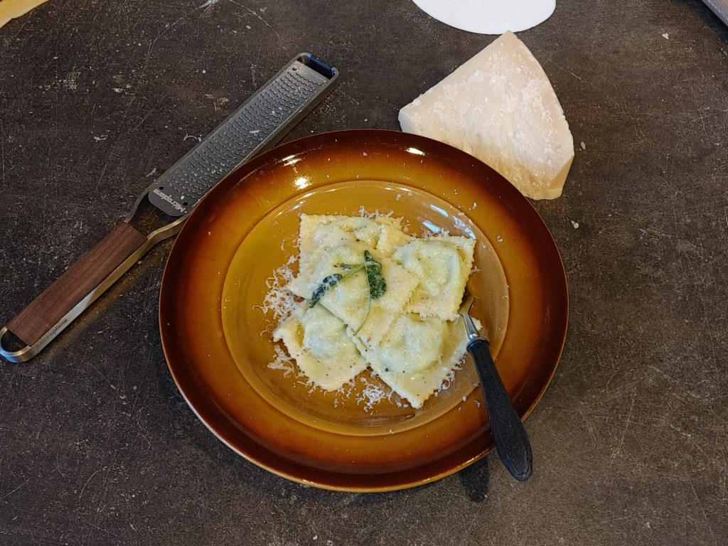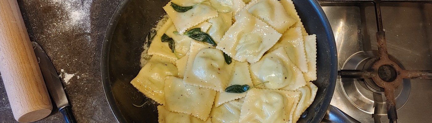 To, że przepis na domowy makaron pojawi się na blogu prędzej czy później, było pewne. Planowałem jednak, że zaczniemy od czegoś prostego – cavatelli, pici, może ewentualnie tagliatelle. Niestety wyszło inaczej. Sezon szpinakowy w pełni i nawet u mnie warzywo to obrodziło w tym roku zadziwiająco dobrze. Szukając pomysłu na następny przepis, postanowiłem więc skorzystać z własnych płodów rolnych. A kiedy mówię „szpinak”, zwykle myślę „ravioli”. To było pierwsze skojarzenie, tym bardziej że wreszcie po długiej przerwie udało mi się kupić, potrzebną w tym przepisie, szałwię. Szybko odświeżyłem sobie przepis i już za trzecim podejściem udało mi się nadać mu formę skodyfikowaną.