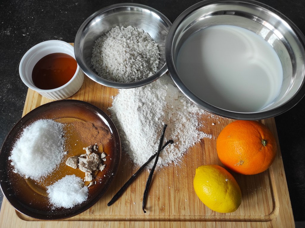 No dobrze, wiemy już czego nam potrzeba. Pora omówić składniki nieco dokładniej. Zacznijmy od tych najbardziej podstawowych. Głównym bohaterem jest oczywiście ryż. O ile w przypadku risotto zawsze namawiam Was do używania ryżu carnaroli lub vialone nano, tym razem właściwą odmianą będzie popularna arborio. Czemu? Otóż szybciej się ona rozgotowuje i posiada mniej skrobi, jest więc idealna na wilgotne i lekko puszyste ciasto. Dodajmy, że ryż nie musi być najwyższej dostępnej jakości, wystarczą nam produkty popularnych marek. Szukajcie w super- i hipermarketach oraz stacjonarnych i internetowych sklepach ze zdrową żywnością czy delikatesach. Ja skorzystałem ze znalezionego w Lidlu ryżu marki Italiamo. Alternatywą dla arborio jest podobno odmiana roma, jej dostępność w Polsce jest jednak znikoma. Możecie też wybrać carnaroli czy vialone nano, jednak prawdopodobnie będziecie musieli użyć przy jego gotowaniu więcej mleka. Wybierając to ostatnie, warto zainwestować w takie niefiltrowane i niepasteryzowane. Nasze crispelle z pewnością będą smaczniejsze. Wybór mąki nie jest tym razem bardzo istotny. Warto by była dobrej jakości i o bardzo drobnym przemiale, który zapewni nam delikatne ciasto. Polecam klasyczne mąki typu 00 od Caputo albo le 5 Stagioni. Sprawdzi się jednak także dobra mąka tortowa. Możemy skorzystać zarówno z białego, jak i brązowego cukru. Zamiast świeżych drożdży, możemy wykorzystać suszone, zachowując proporcje podane na opakowaniu. Tylko użycie prawdziwej wanilii da nam pełnię smaku. Niestety, jest to rozwiązanie mało ekologiczne – uprawy wanilii płaskolistnej to wielkie monokultury bardzo niekorzystnie wpływające na środowisko naturalne. Jeśli chcecie ją czymś zastąpić, pozostaje Wam cukier wanilinowy (używamy 1 do 1 i ½ łyżeczki na laskę wanilii). Wybierając cynamon, warto – tak jak w przypadku innych przypraw korzennych – skorzystać z oferty sklepów z żywnością azjatycką. Sprzedawane tam produkty są zwykle znacznie lepszej jakości od tych popularnych marek. Do tego często kupimy je w znacznie lepszej cenie. Cytrusy wykorzystamy niemal w całości, wyciskając z nich sok oraz ocierając skórkę. Warto zadbać więc by były to owoce ekologiczne i niewoskowane. Powinniśmy znaleźć je w sklepach wielkopowierzchniowych lub delikatesach włoskich. Na koniec pozostawiłem słodki akcent, w postaci miodu😉. Możemy skorzystać z dowolnego. Ja użyłem dobrej jakości aromatycznego miodu leśnego, który nabyłem od znajomego pszczelarza. Pamiętajcie, że krystalizacja (jakiej po pewnym czasie ulega tylko prawdziwy miód) nie jest jego wadą! Stan ten możemy odwrócić ogrzewając zawartość słoika przez dłuższy czas, pamiętając by nie przekraczać temperatury 40° Celsjusza (wyższa niszczy wartości odżywcze miodu). Dla własności smakowych czy zdrowotnych nie ma to jednak większego znaczenia.