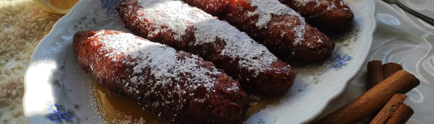 Nasz dzisiejszy bohater to rodzaj racuchów typowych dla kuchni wschodniej części Sycylii, a zwłaszcza okolic Katanii. Poznaliśmy je podczas naszej wizyty w tym mieście dwa lata temu i od razu zakochaliśmy się w ich smaku. Dodatek ryżu powoduje, że crispelle prócz chrupiącej skórki oferują nam również wspaniałe wilgotne wnętrze, którego niestety często brakuje pączkom lub racuchom. Skórka otarta z cytrusów, wanilia i cynamon zapewniają im natomiast wspaniały aromat. Crispelle tradycyjnie przygotowuje się na Dzień Ojca, obchodzony we Włoszech 19 marca. Jest to podwójne święto, gdyż jednocześnie data ta poświęcona jest świętemu Józefowi, co dla tradycyjnie mocno wierzących mieszkańców Italii jest nie bez znaczenia. Jeśli już o świętach i zwyczajach mowa, muszę podkreślić, że nie udało mi się z całą pewnością ustalić czy Włosi obchodzą tłusty czwartek. Chociaż niektóre źródła twierdziły, że tak, to jednak większość z nich jako dzień objadania się słodkościami wskazuje na il martedì grasso – tłusty wtorek – ostatni dzień przed Wielkim Postem.
