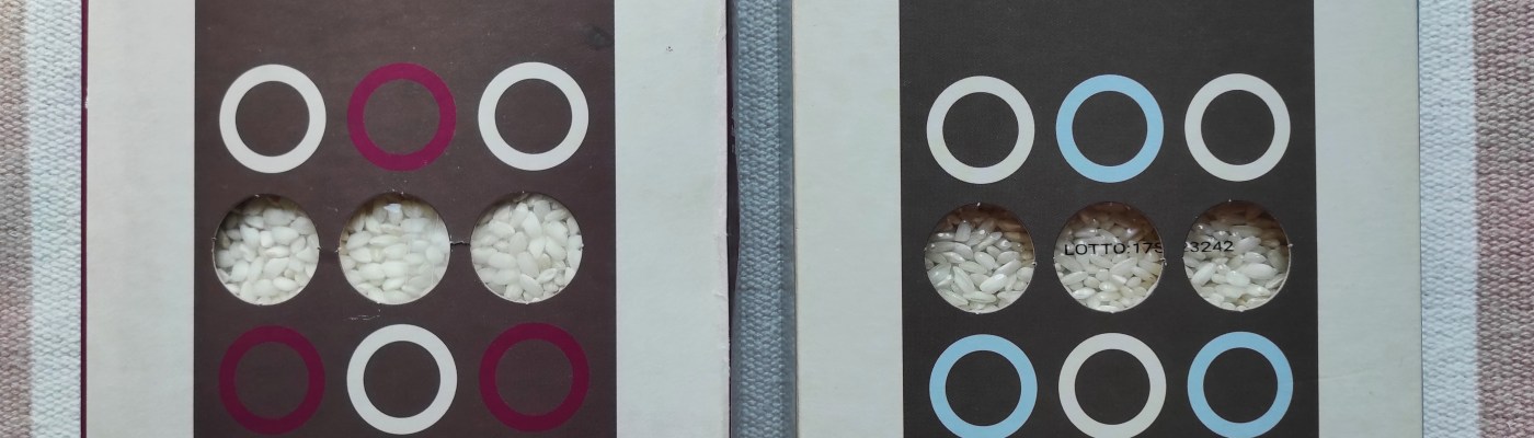Mając te trudności na uwadze, jakiś czas temu postanowiłem testować dla Was ryże do risotto, które napotykam na swojej drodze kulinarnej. Jak do tej pory napisałem dwa takie teksty (tutaj i tutaj), do lektury których również Was zachęcam. Przed sobą macie trzeci z serii, a w najbliższej przyszłości z pewnością powstanie przynajmniej jeszcze jeden. Mam nadzieję, że dzięki nim będziecie w stanie łatwiej wejść w temat risotto (po przepisy zajrzyjcie do odpowiedniej zakładki). Dwa ryże, które chciałbym przedstawić Wam dzisiaj wyszperałem zeszłej jesieni i od tego czasu wytrwale testowałem. O wynikach tych testów przeczytacie poniżej😉.